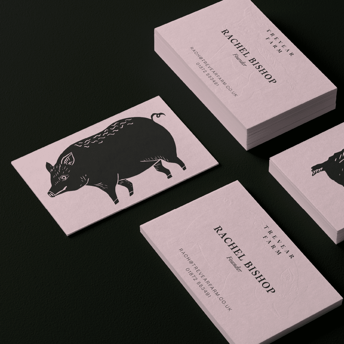 The logo, a simple Guinea Fowl, takes inspiration from the local birds themselves that live on and around the farm. The rest of the matching illustrations are also inspired from the nearby landscape and scenery, from the Pygmy Goats to the Cornish Elms.